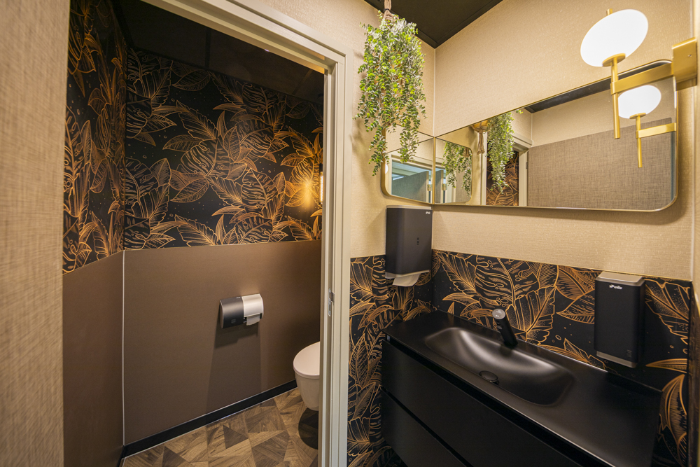 Het resultaat is meer dan alleen een sanitaire voorziening – het is een plek waar medewerkers en bezoekers even kunnen pauzeren in een omgeving die net zo inspirerend voelt als de rest van het pand.